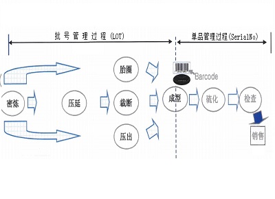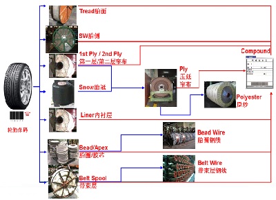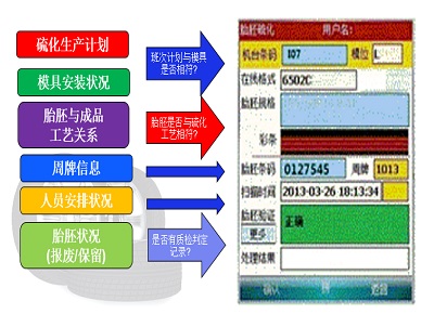 根据时间先后来引导原材料、胶部件、胎胚的工序投入与产出要求下,各项作业变动的时间与数量已被有效记录,各样物料,如胶料, 材料、胶部件、胎胚的动态库存状况是可以实时统计与取用,最大的效益就是减少人工操作在此环节下的不及时、不完整、不正确的困扰。
